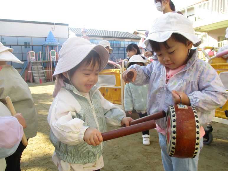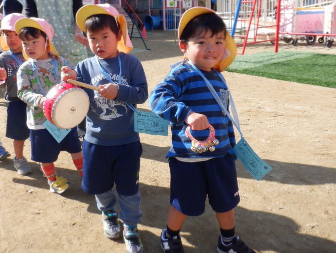 みんなで大きな声の掛け声をしながら園庭を練り歩きました。
