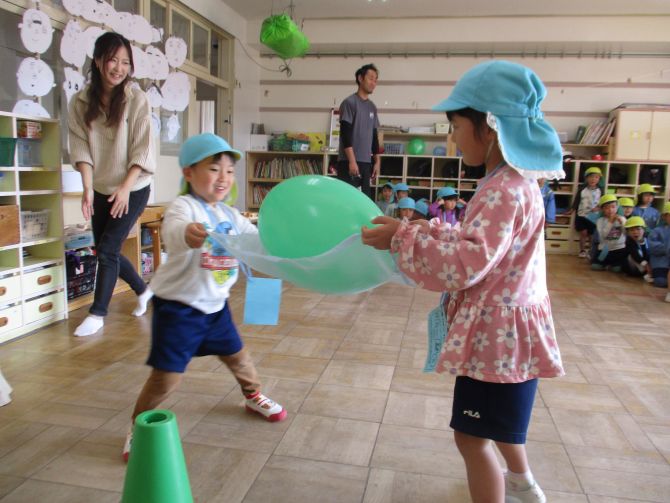 風船を落とさないように…