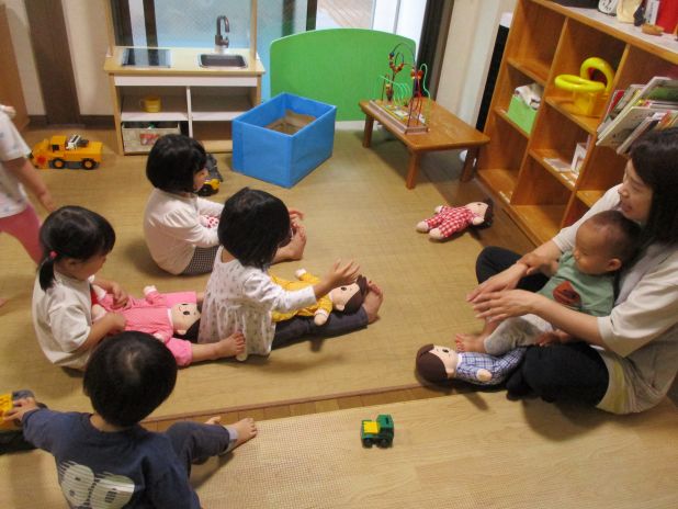かわいい人形が登場すると、目をキラキラさせてじーっと見つめたり 動きに合わせて体をユラユラさせたり、手を叩いて喜んでいました☆