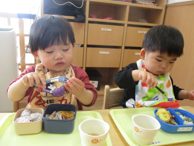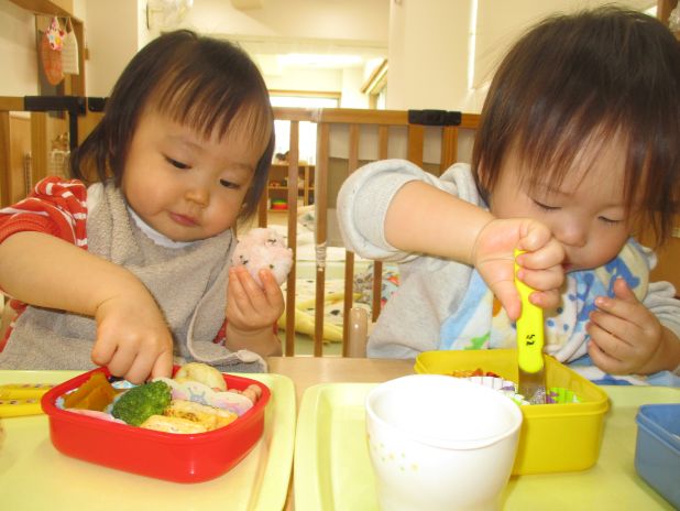 お弁当の時間になるとキラキラと目を輝かせながらお弁当箱を覗き込む子どもたち。 「わぁ!」と嬉しそうな表情を見せる姿が可愛らしく微笑ましかったです。 お家の方が作ってくださった愛情たっぷりのお弁当を 1口1口味わうようにとても嬉しそうに食べていました。
